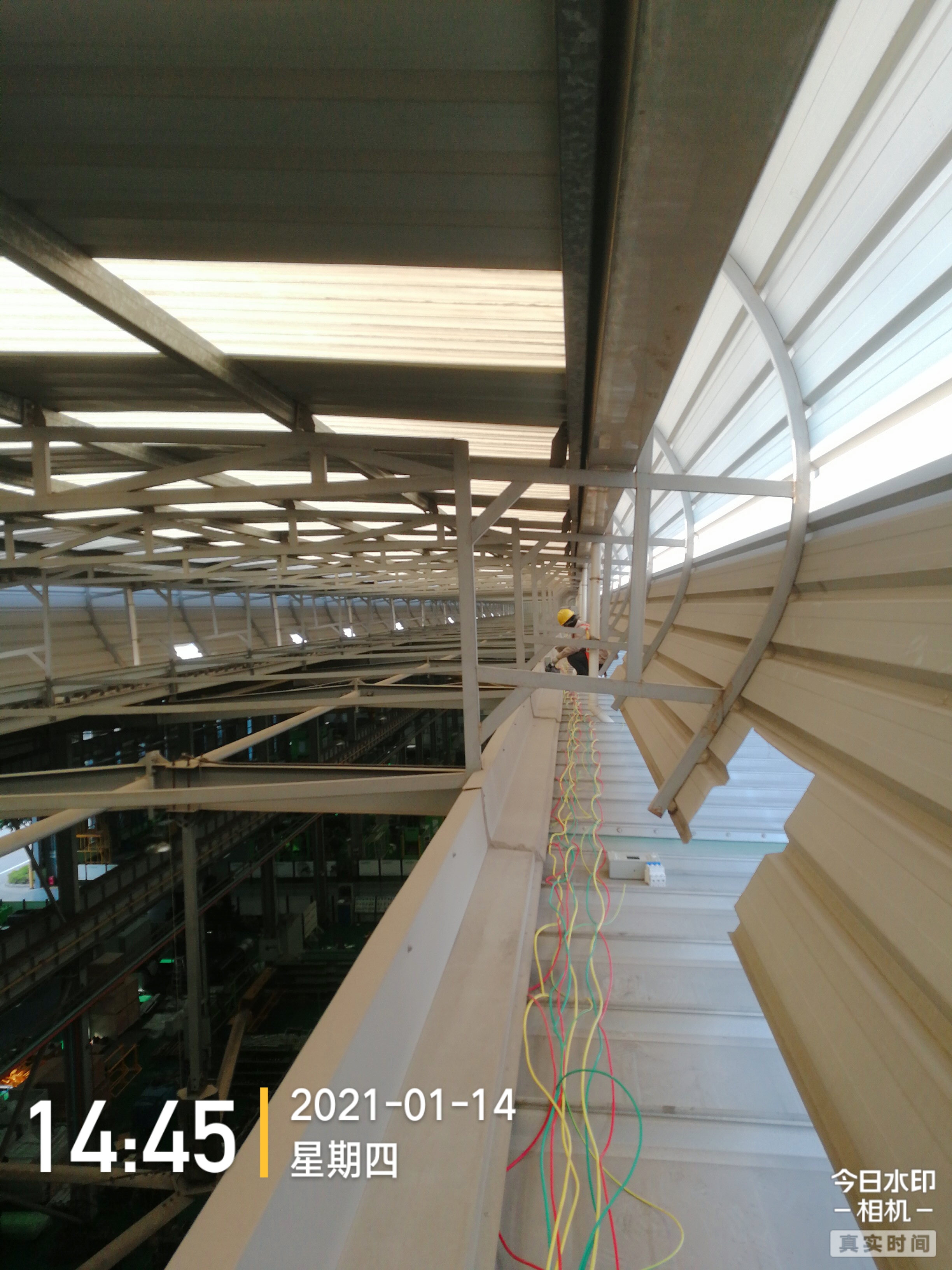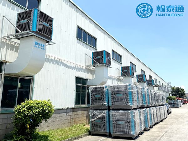 本次安装项目地在广东佛山市顺德高新区,车间为钢结构厂房,长度为195米,宽度为108米,整体为21060平方米,设计安装38台,均为每小时25000风量,下出风口的翰泰通环保空调,采用顶棚安装,集中供水的方式。